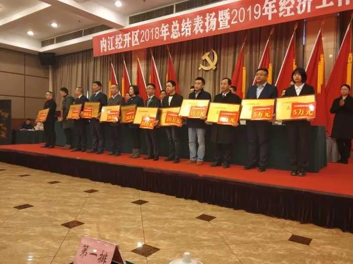02 19-022月1日上午,內江經開區2018年總結表揚暨2019年經濟工作會議在飄香園會議中心牡丹廳隆重召開。會議表揚了2018年創新發展先進企業、稅收貢獻獎、新進“四上企業”、招商引資誠信企業、“人才特區”建設先進企業及優秀企業家。區級部門主要負責人、分管負責人、部分在編在職干部,各鎮、街道黨政主要負責人、分管經濟工作負責人、經發辦主任,受表彰的單位和干部職工,重點工業、服務業企業負責人參加會議。