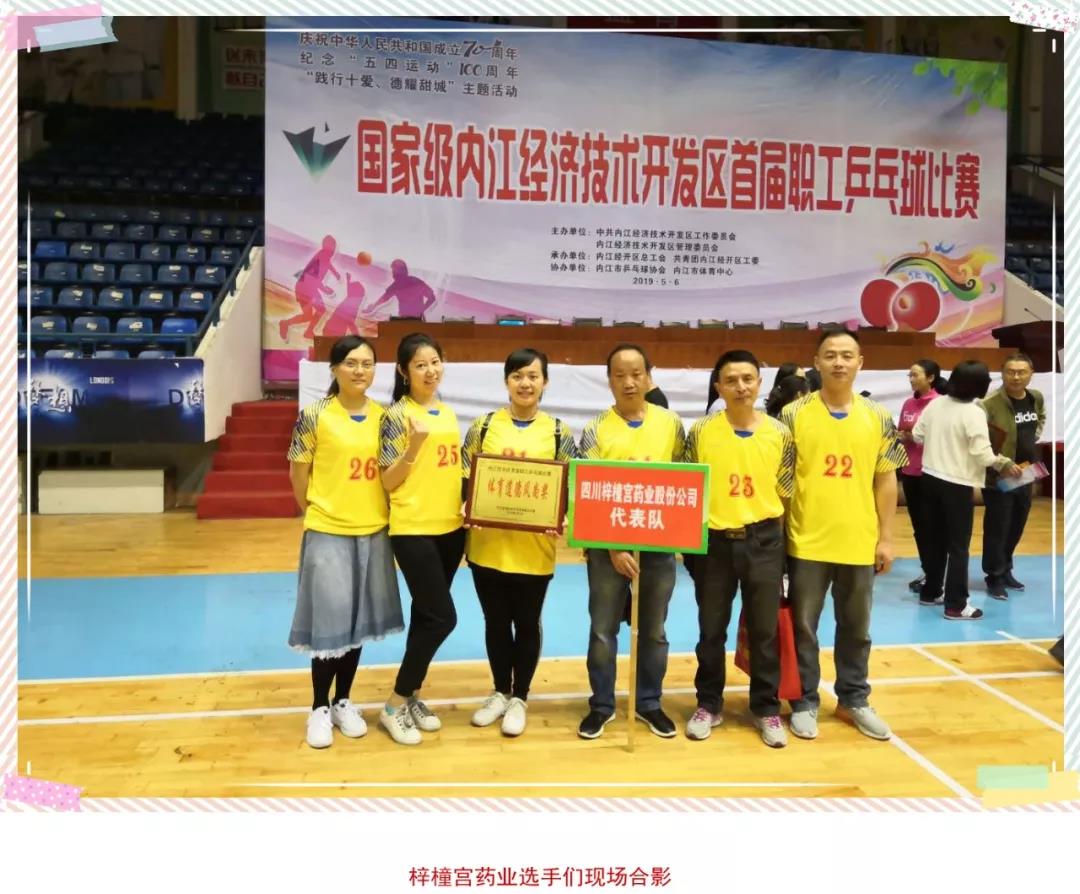 07 19-05“增強體質,促進交流!” 5月6日,由經開區總工會和團工委主辦,市乒乓球協會承辦,市體育中心協辦的內江經開區首屆職工乒乓球比賽在梅家山體育館隆重開幕,本屆乒乓球賽共有24支隊伍220余名職工參加比賽。梓橦宮藥業的職工積極參與,展示風采。