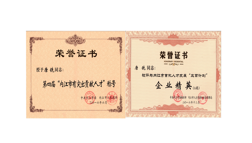 熱烈祝賀梓橦宮藥業董事長唐銑博士榮獲“內江市有突出貢獻人才”稱號